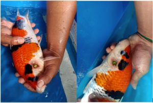 Keterangan : bekas luka permanen pada ikan koi akibat gagal cutting.